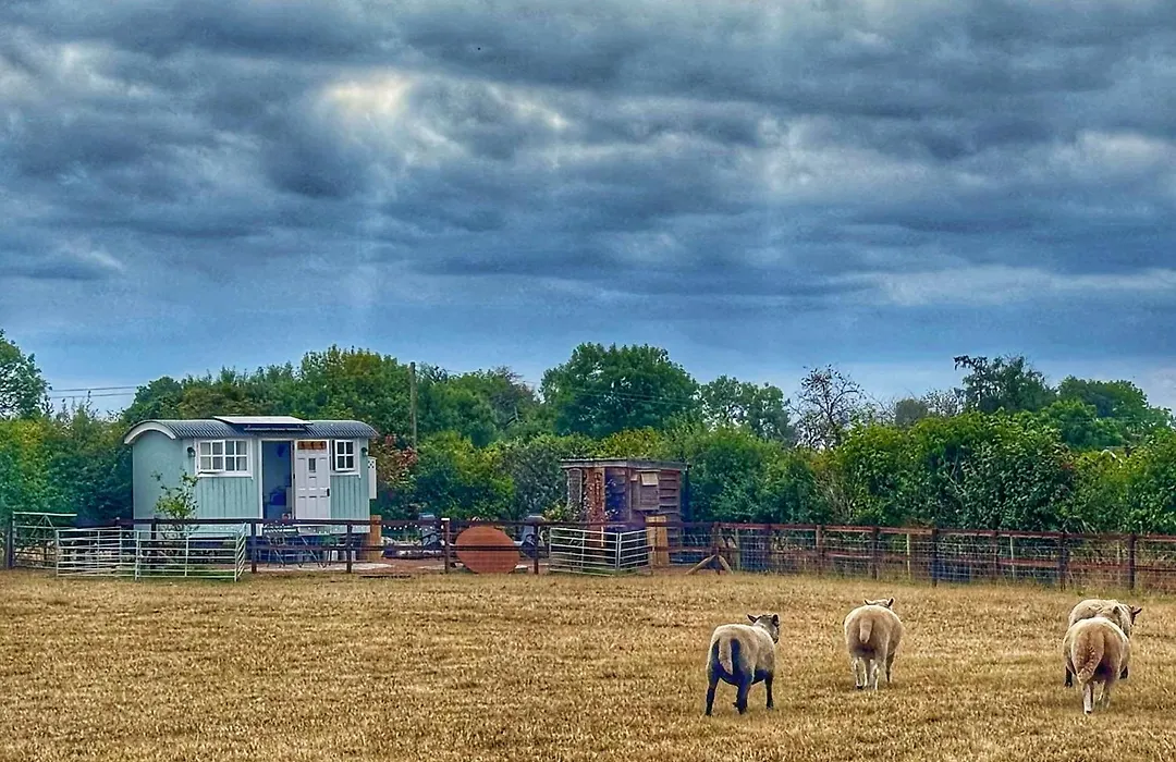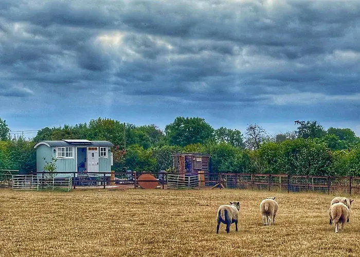 ベッドルーム1室のAlvingtonThe Meadows HutアパートメントはTaurus Craftsから徒歩で25分に位置し、パティオの景色を一望できます。